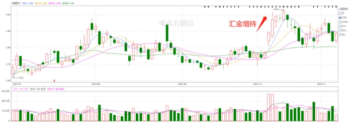 中央汇金时隔8年后再次出手增持四大行,合计斥资近5亿元。随后的2个交易日,中国银行股价应声大涨,10月12日和13日分别收涨3.2%和2.1%。
