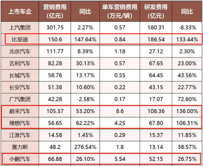 新能源汽车的高研发投入是行业的普遍现象,也是各车企主打科技创新的关键所在,今年前三季度已经成为全球新能源汽车销量冠军的比亚迪在研发投入上达到249.38亿元,以现行汇率计算约为35.53亿美元,最会赚钱的新能源车企特斯拉前三季度的研发投入为208.85亿元,折合29.76亿美元,比亚迪在研发投入上反超特斯拉,其中比亚迪5.91%的研发占比也高于特斯拉的4.16%。