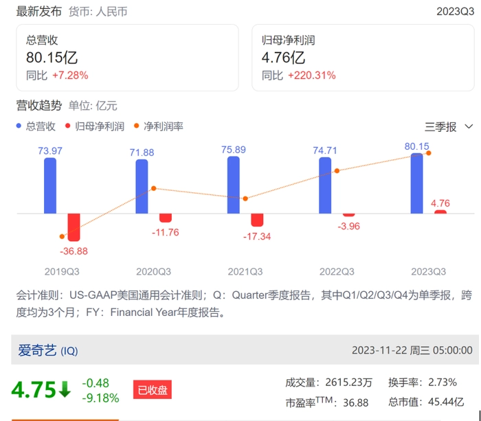 北京时间11月21日,爱奇艺发布2023年三季报。