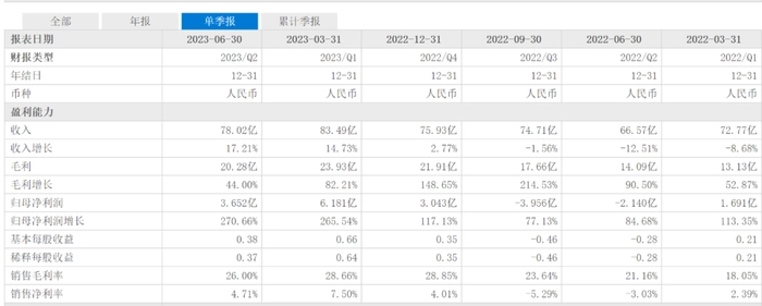 2023年第一季度,爱奇艺营收83.49亿元,同比增长达14.73%;归母净利润6.18亿元,同比增长265.5%。第二季度营收78.02亿元,同比增长17.21%;归母净利润3.65亿元,同比增长270.7%。第三季度营收80.15亿元,同比增长7.28%;归母净利润4.76亿元,同比增长220.3%。爱奇艺连续四个季度盈利且净利润均以117%以上的增幅增长,这在爱奇艺的发展史上尚属首次。