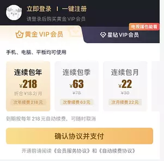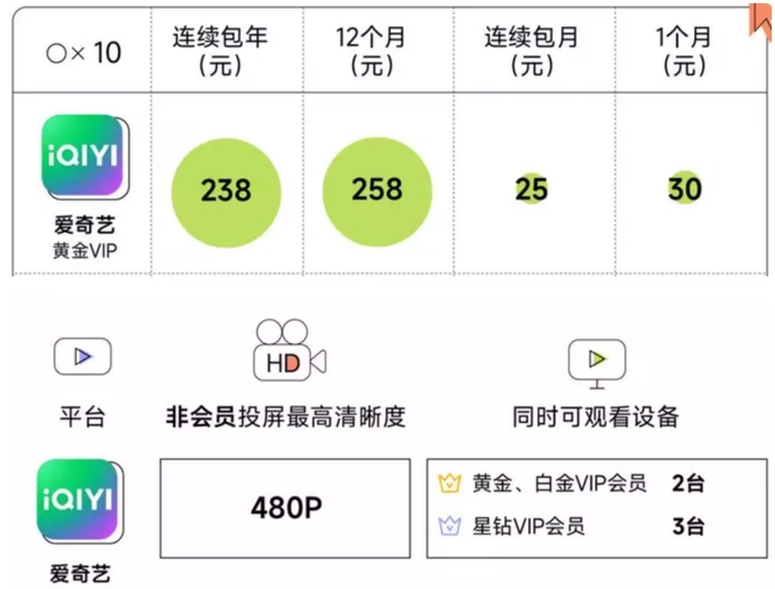 但爱奇艺的会员收费模式一直被消费者诟病,2022年爱奇艺会员服务营收177亿元,较2018年增长了65.4%。其会员238元和258元的年费也仅次于优酷的348元和488元,单月续费最低位25元和30元两种。