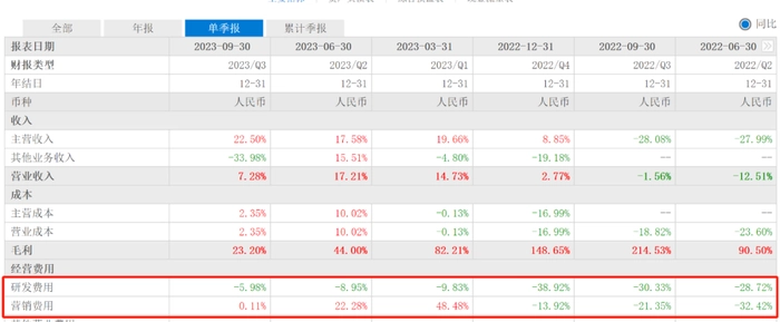 当然爱奇艺的持续单季度盈利,和自身降本增效也有一定关系,2022年爱奇艺的营业成本已同比下滑19%,降至223亿元。2023年第三季度爱奇艺研发费用为人民币4.474亿元,2022年同期为4.759亿元,同比下降6%。需要注意的是,爱奇艺的研发费用持续下滑,截至9月30日,已经连续7个季度研发费用下滑,作为收入成本组成部分的内容成本42亿元,同比下降3%。与之对应的是近几个季度营销费用的不断增加,上半年前两个季度爱奇艺的营销费用分别同比增长48.48%和22.28%,三季度再次微增。