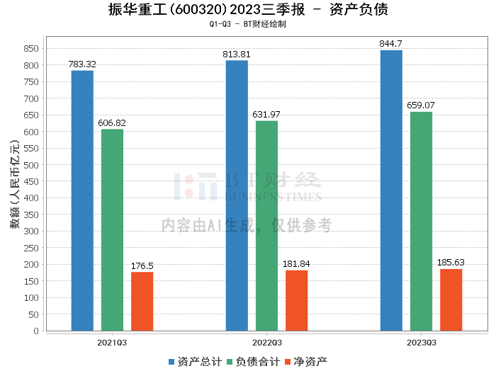 资产负债方面,振华重工的总资产由上年度末的782.13亿元增长至本报告期末的844.7亿元,增长了8.00%。负债合计也从上年度末的600.91亿元上升至659.07亿元。尽管负债有所增加,但公司净资产也实现了增长,从181.22亿元增至185.63亿元。资产负债率略有上升,从76.83%增至78.02%,反映出公司财务结构的稳健。