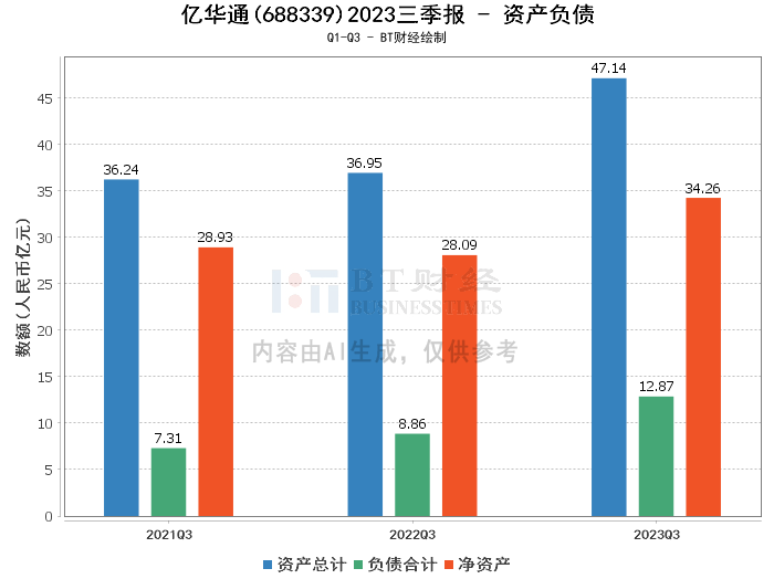 从资产负债方面来看,亿华通2023年三季报显示,资产总计达到47.14亿元,相比上年度末的37.84亿元有了显著增长。负债合计为12.87亿元,也有所增加,上年度末为10.4亿元。净资产则从上年度末的27.44亿元增长到34.26亿元。资产负债率略有下降,从上年度末的27.49%降至27.31%,表明公司的资产结构保持稳定。