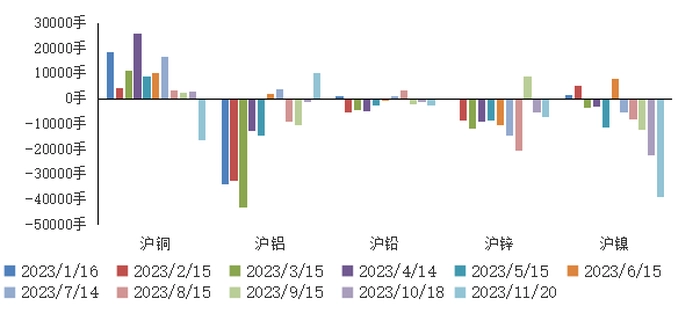 11月20日,沪镍持仓量TOP20期货公司持有净空头由23436手进一步扩大至39207手。11月10日,伦镍商业机构持有净空头16907手,较上月同期空头敞口略微收窄200手,投资基金持有净空头17153手,较上月同期空头敞口扩大668手。