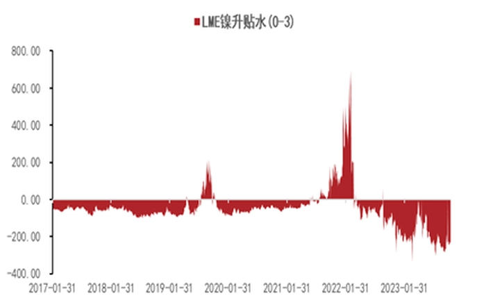 图7:伦镍Cash/3M贴水231美元/吨反映现货资源维持宽松