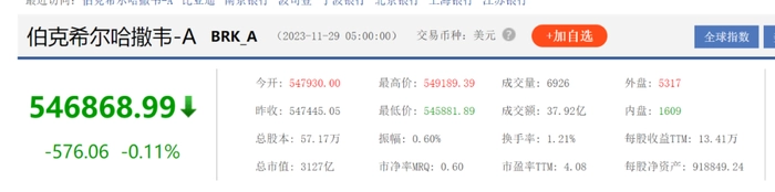 芒格去世的消息影响到投资者对伯克希尔·哈撒韦的信心,次日伯克希尔·哈撒韦美股股价下跌超576美元,对于超过3000亿美元市值的伯克希尔·哈撒韦来说,损失芒格远比股价下跌影响更大。