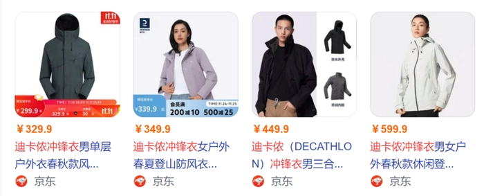 尽管身处冬季,冲锋衣却替代羽绒服成了淘宝热搜。今年9月冲锋衣的市场份额比去年同期上升了8.2个百分点,羽绒服则下降了3.1个百分点。京东数据显示,冲锋衣成为年轻人的新宠,今年以来的成交额同比增长165%。在今年双十一期间,10月20—25日冲锋衣成交额同比增长200%。在羽绒服不断涨价的情况下,众多消费者倒戈向冲锋衣,白白让冲锋衣捡了大便宜。尤其现在的冲锋衣已经做到防水、防风,拥有透湿性能,同样适用冬季的防寒保暖,在“三合一”硬壳和内胆的加持下,冲锋衣已经冲击冬衣市场。2022年迪卡侬净销售额达到154亿欧元,同比增长12%,净利润达到9.23亿欧元,再创纪录,迪卡侬取得的优异成绩,和羽绒服的涨价不无关系。