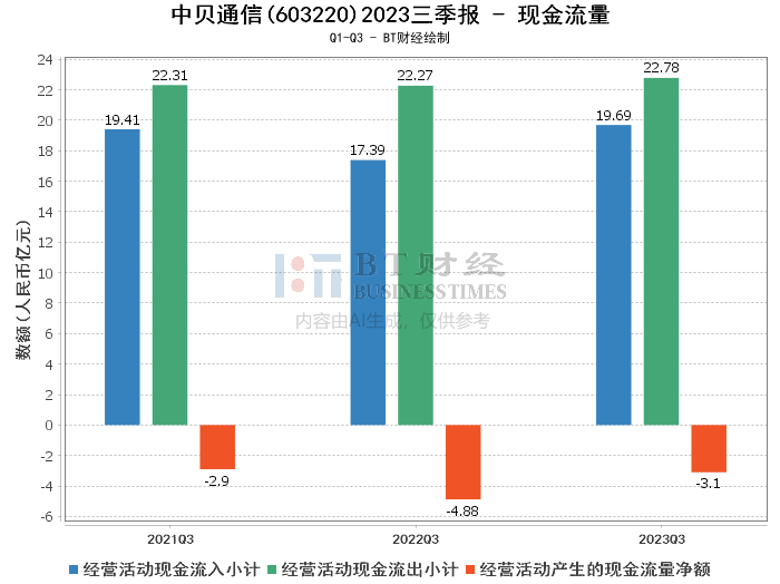 综上所述,中贝通信在2023年三季报中展现了稳健的业绩增长。公司在5G新基建和智慧城市领域的布局开始显现成效,营业收入和净利润均实现了较大幅度的增长。虽然现金流量净额为负,但这在一定程度上是由于公司为未来发展所作的战略性投入。