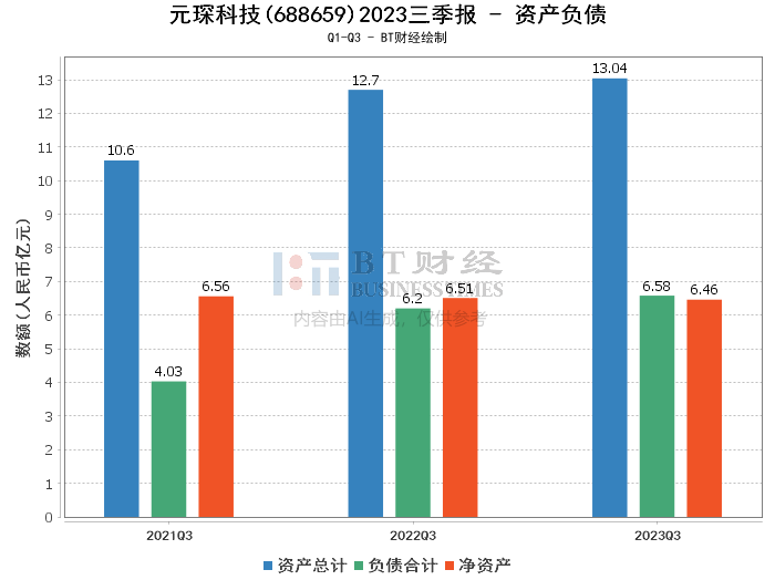 从资产负债表来看,元琛科技的总资产有所增长,从上年度末的12.74亿元增至13.04亿元,增长了2.33%。负债合计也有所上升,从6.31亿元增至6.58亿元。净资产略有增加,从6.43亿元增至6.46亿元,资产负债率略微上升,从49.53%增至50.45%,这表明公司的财务结构相对稳定,但负债水平有轻微上升。