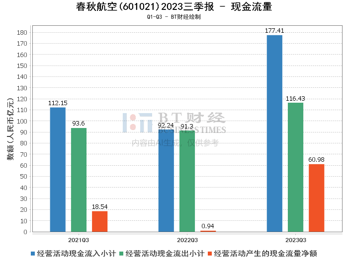 综合来看,春秋航空在2023年三季度的经营状况有了显著的改善。公司不仅在营业收入和净利润方面取得了正向增长,而且在资产负债结构上也表现出稳健。现金流量的大幅增加进一步证明了公司运营效率的提升和市场需求的恢复。