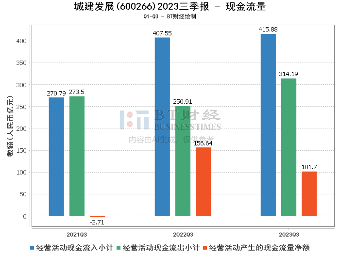 现金流量方面,城建发展的经营活动产生的现金流量净额年初至本报告期末为101.7亿元,虽然比上年同期的156.64亿元减少了35.08%,但仍显示出公司经营活动的稳健现金流。现金流入小计略有增长,从407.55亿元增至415.88亿元,而现金流出小计从250.91亿元增至314.19亿元,主要原因是项目销售回款减少。