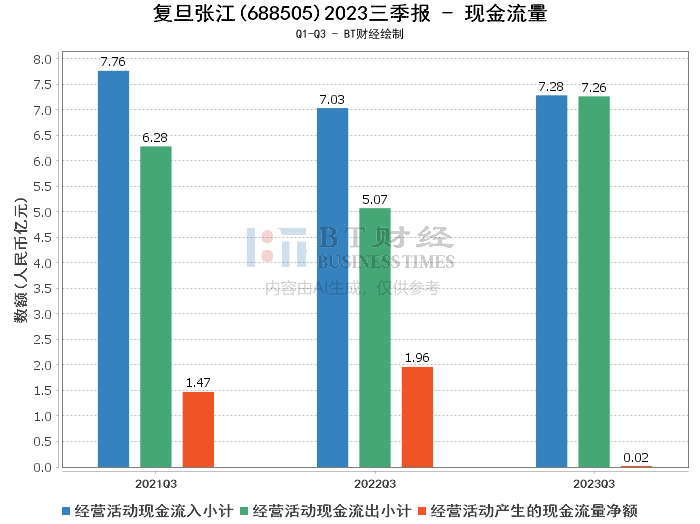综上所述,复旦张江在2023年三季度表现出较强的盈利能力,尤其是净利润的大幅增长显示了公司良好的盈利趋势。资产负债结构的改善和负债水平的下降也为公司的长期发展提供了稳定的财务基础。然而,现金流量的大幅减少需要关注,以确保公司的流动性和经营活动的持续性。