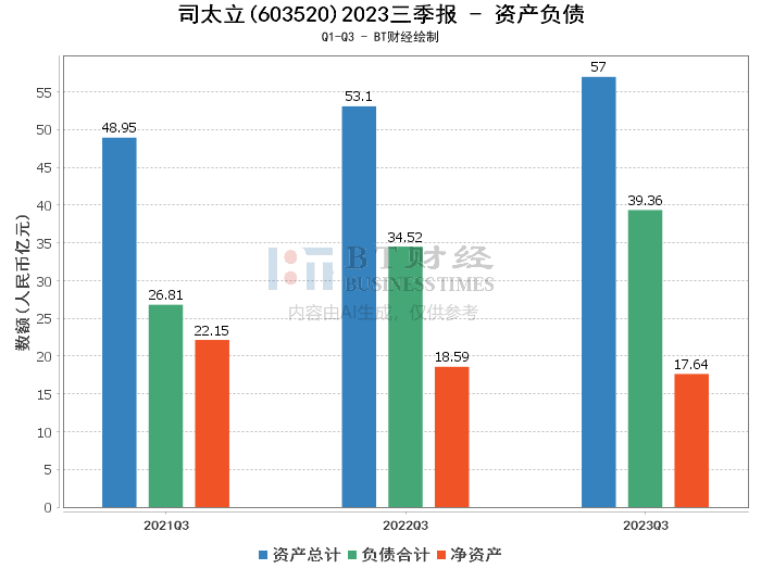 从资产负债的角度来看,司太立截至2023年三季度末的总资产达到了57亿元,较上年度末的53.02亿元增长了7.51%,显示出公司资产规模的稳步扩张。负债合计也有所上升,从上年度末的35.31亿元增至39.36亿元,增长幅度与资产增长相匹配,维持了公司运营的稳定性。净资产略有减少,从17.71亿元微降至17.64亿元,但资产负债率从66.59%上升至69.05%,反映出公司对外部融资依赖度的轻微增加。