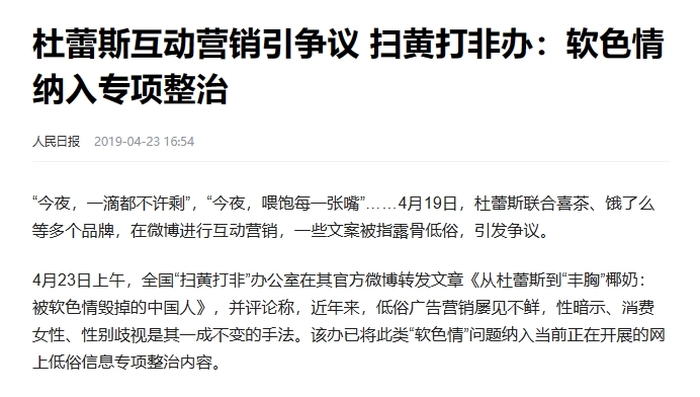 2019年喜茶联名杜蕾斯事件曾让无数网友狠批为“下流”,喜茶联名杜蕾斯的文案为“还记得第二次约会,我对你说‘你的第一口最珍贵’?”“今夜,一滴都不许剩……”《人民日报》等官方媒体批驳喜茶低俗营销,称其文案露骨低俗,随后喜茶公开致歉。