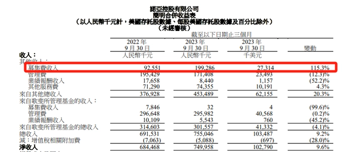 2023年11月30日,诺亚控股公布了2023年第三季度未经审计业绩报告。