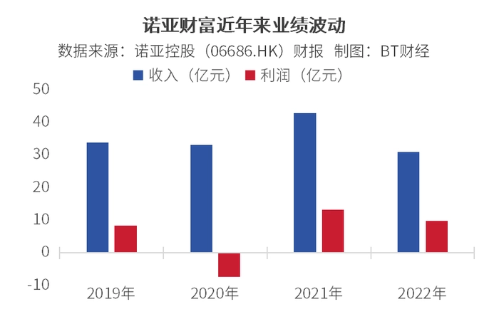 虽然诺亚的三季度多项关键经营指标录得同比增长,但如果将时间线拉长,就能看到诺亚财富业绩的高波动显示出不确定性,比如据财报显示,2022年公司营收还不及2019年和2020年的水平。
