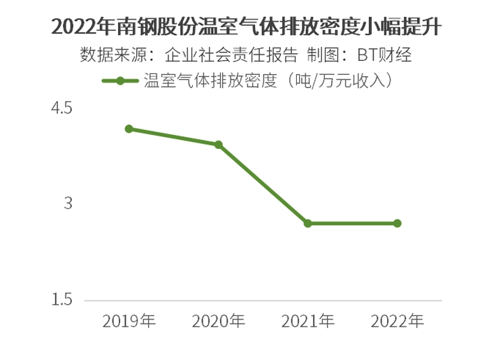 第二是南钢股份的多个环保指标的表现确实好于同行。以另一家大型钢铁企业首钢股份( 000959.SZ )对比,南钢、首钢两家公司2022年温室气体排放强度分别为2.7020吨/万元、3.5956吨/万元,煤炭消耗强度分别为0.4714吨/万元、1.0466吨/万元——可见在上述两项指标上,南钢的表现均略优一些。