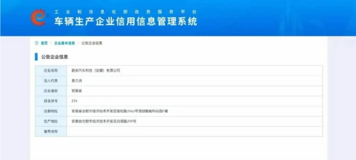 据中国经济网报道,12月8日,工信部车辆生产企业信用信息管理系统发布公告,公告信息显示蔚来出现在“车辆生产企业信用信息管理系统”中。这则公告意味着卖车六年的蔚来,有望拿下一直想要的生产资质。
