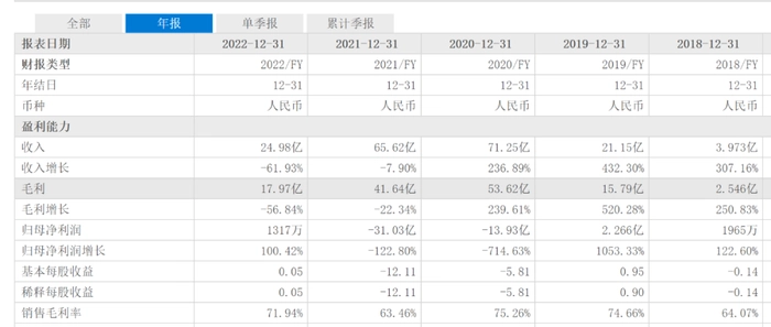 据2022年年报显示,当年高途的营收再次骤降至24.98亿元,同比下滑了61.93%,但这一年却扭亏为盈,净利润为1317万元,同比增长100.42%。