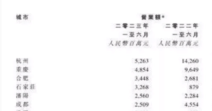 需要注意的是,龙湖今年在重庆的地产开发核心业务却大幅下滑,导致龙湖在今年上半年地产开发业务收入498.7亿元,同比去年同期的837.7亿元下滑了40.5%,除大本营重庆的地产开发减少五成,另一大重要市场杭州的地产开发业务同样表现不佳,跌幅超过63%,而另一大西部重镇成都也下滑了45%。而西部房企金科、蓝光发展、中骏地产等千亿级房企近期均遭遇生存难题,龙湖在西部业务下滑或因为行业逆周期所致。