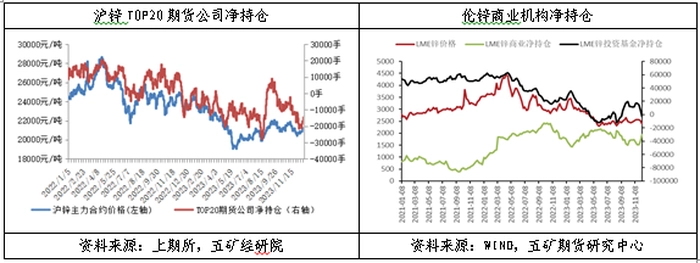 12月22日,沪锌持仓量TOP20期货公司持仓由上月同期净空头12926手略微扩大至14629手。12月15日,伦锌商业机构持有净空头33050手,较上月同期空头敞口收窄12329手,投资基金转为持有净多头头寸2389手,多头敞口规模大幅收窄14545手。