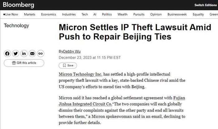 12月24日彭博社在报道中表示,美光公司在一封内部邮件中透露,他们已与中国福建省晋华集成电路有限公司(业内俗称福建晋华)达成了和解协议。根据这封邮件的内容,“两家公司将在全球范围内撤回对彼此的指控,并终止所有相关的法律诉讼。”