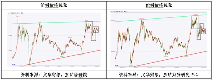 沪铜期货价格长期运行区间在40000-79000元/吨,伦铜期货价格长期运行区间在5000-11000美元/吨。12月22日,沪铜主力合约收盘价69040元/吨,处在长期价格区间74%分位;伦铜期货收盘价8570美元/吨,处在长期价格区间60%分位。