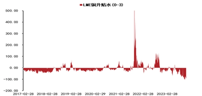图6:伦铜Cash/3M贴水90美元/吨反映现货资源维持宽松