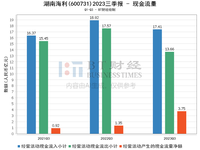 综上所述,湖南海利在2023年三季度面临一定的营收压力,但通过有效的成本控制和资产负债结构优化,公司的财务状况仍然保持稳健。现金流的显著改善也为公司的日常运营和未来发展提供了坚实的资金支持。