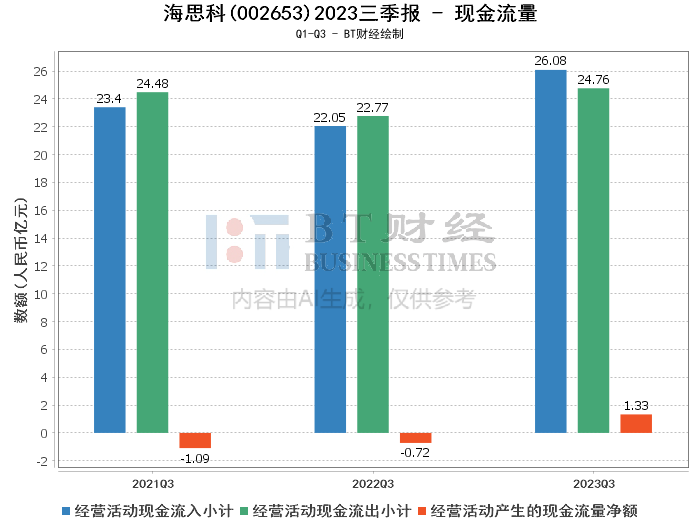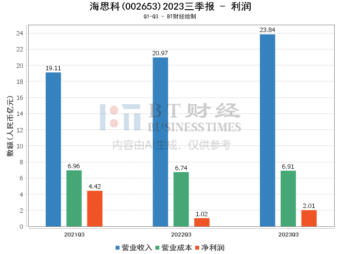 综上所述,海思科在2023年第三季度的经营状况呈现出稳健增长的趋势。公司不仅在营业收入和利润上实现了显著的增长,而且在财务结构上也表现出了明显的改善,资产负债率的下降和现金流量净额的转正均显示出公司在财务管理方面的成效。