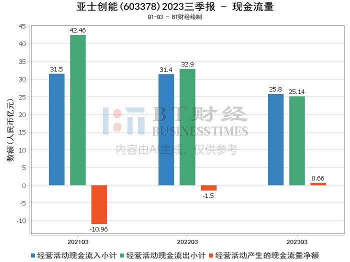 综上所述,亚士创能在2023年三季度表现出了稳健的业绩增长,尤其是在扣除非经常性损益的净利润方面的显著增长,以及现金流量净额的大幅改善。这些指标表明公司在市场竞争中保持了良好的盈利能力和现金流管理。