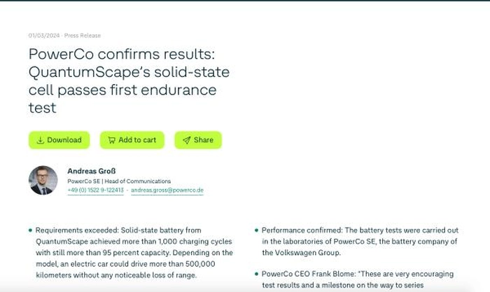 近日,被誉为全美固态电池“三驾马车之一”的量子景观(QuantumScape)公司宣布,其固态电池成功通过了德国大众公司严苛的50万公里耐久性测试。
