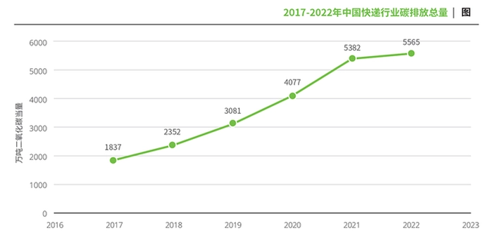 中国快递行业的碳排放量在五年内增长超200%,2023年6月发布的《中国快递行业的碳排放》研究报告引用了来自华中科技大学、中南林业科技大学和浙江省长三角循环经济技术研究院的成果,透露出上述数据。