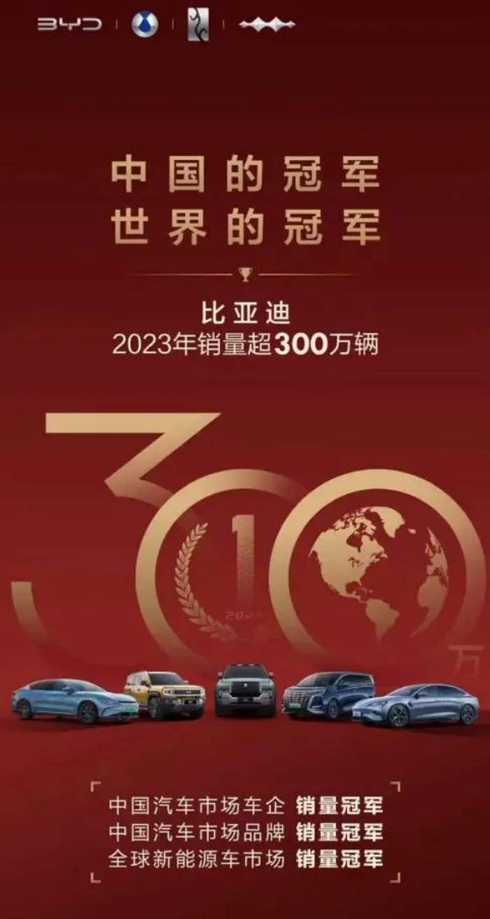 2024年伊始,各大车企都在晒2023年的成绩单,其中最引人注目的是比亚迪的“四个第一”,这四个第一分别是全球新能源车市场销量第一、中国汽车市场车企销量第一、中国汽车市场品牌销量第一,第四个第一则是中国第一大汽车企业。
