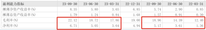 营收不如上汽集团,净利润却是上汽集团的2.4倍,根本原因在于比亚迪毛利率和净利率的大幅提升。2023年三季度综合毛利率上升至22.12%,2023年的前三个季度比亚迪的毛利率分别为17.86%、18.72%和22.12%,而2022年前三季度的毛利率分别为12.40%、14.39%和18.96%。2023年前三季度毛利率分别提升了5.58个百分点、4.33个百分点和3.16个百分点。毛利率的大幅提升带来净利率的提升,2023年前三季度的净利率分别为3.64%、5.05%和6.71%,上一年同期分别为1.36%、3.61%和5.17%,分别提升了2.28个百分点、1.44个百分点和1.54个百分点。众所周知,当毛利率和净利率达到极值时,哪怕想提升0.01个百分点都极为困难,比亚迪的毛利率和净利率都有不同程度地提升。