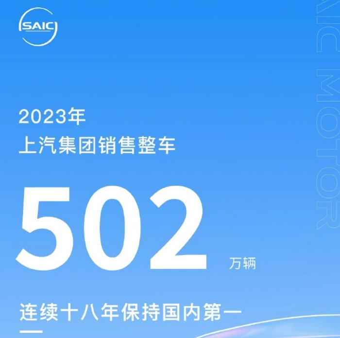 进入2024年,比亚迪率先发布了四个第一的业绩海报,上汽集团几乎同时在发布的业绩海报中(官微发布),清晰突出了其销量502万辆,并强调了连续18年保持国内汽车销量第一。