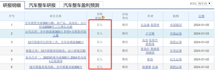比亚迪的股价虽然遭遇低迷,但在众多分析师眼中,比亚迪却依然被追崇。在毛利率和净利率不断提升的情况下,其大幅增长的销量为比亚迪带来更多的利润。进入2024年以来共有东吴证券、民生证券等六家机构对比亚迪作出了“买入”评级,东吴证券预测比亚迪2023—2025年归母净利润预测为334亿元、442亿元和540亿元,同增101%、32%、22%。