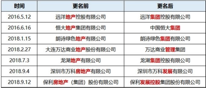 早在2015年至2018年,各大房企就通过改名中的“去地产化”向市场传递信号,引导市场聚焦企业其他多维度业务,弱化地产板块。