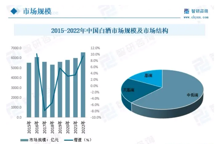 需要注意的是,我国白酒销量自2016年起已经连续7年下滑,2022年白酒销量71.44亿升,这一数据在2022年为73.96亿升。白酒行业已经进入快速整合期,高端白酒同样随着整体销量的下滑而有影响。
