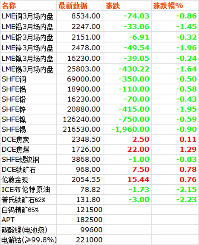 【大宗·期货】2月1日大宗金属交易市场复盘