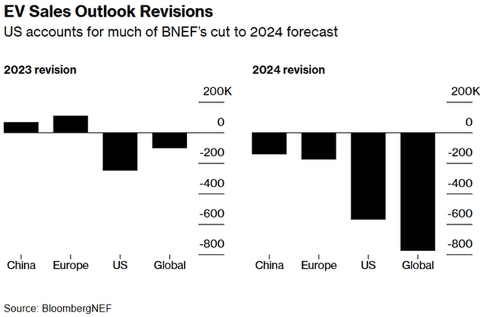 与此同时,电动汽车市场的需求前景似乎并不乐观。尽管马斯克对公司车辆的需求持乐观态度,但市场分析师的预测却给出了不同的结论。标准普尔全球分析师认为,电动汽车的需求将在2024年继续增长,但增速将放缓。他们预测全球电动汽车销量为1330万辆,占汽车总销量的16.2%。而BNEF的预测则更为悲观,他们认为2024年纯电动汽车和插电式混合动力汽车销量合计将比上年增长20%,但这一增速仍低于过去几年的水平。
