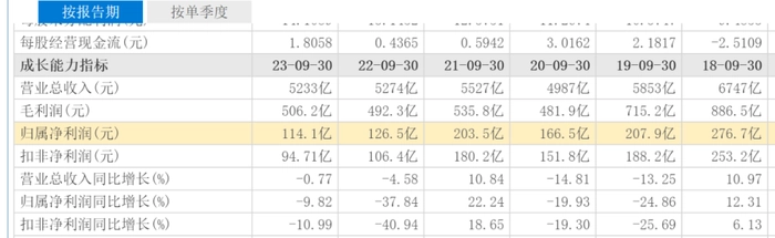 2023年前三季度,上汽集团的业绩表现不太让市场满意。前三季度营收5233亿元,同比下滑0.77%;归母净利润114.1亿元,同比下滑9.82%;扣非净利润94.71亿元,同比下滑10.99%,三项重要指标均出现不同程度的下滑,而净利润下滑的幅度远超于营收下滑的幅度,究其原因就是净利率的下滑。