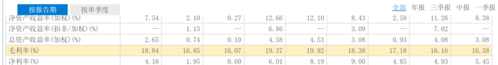 事实上,长城汽车的毛利率和净利率下滑已经不是最近才有。2014年至2016年,长城汽车的毛利率分别为27.70%、25.13%和24.46%,净利率分别是12.85%、10.61%和10.72%。此后2017年,毛利率降至18.43%,一年下滑了6.03个百分点;该年净利率降至5.02%,同样下滑了5.7个百分点。从2017年起,长城汽车的毛利率再没有上过20%,净利率再没有上过10%,均在4%至6%左右。这和车企的竞争加剧有关,也和行业整体趋势有一定关系。