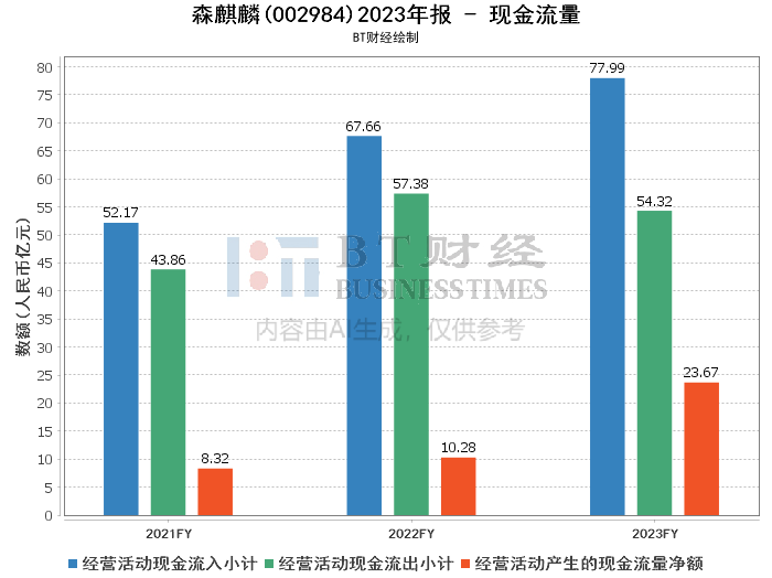 企业的现金流量也表现出色,经营活动产生的现金流量净额从10.28亿元增长至23.67亿元,凸显了公司经营效率的提高和现金流的健康状态。经营活动产生的现金流入从67.66亿元增至77.99亿元,而现金流出从57.38亿元减少至54.32亿元,这表明公司在资金管理方面的有效控制。