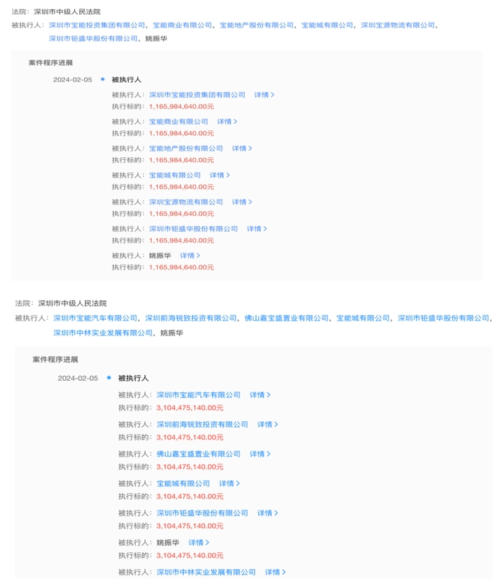 如今,姚振华在失去对中炬高新的控制权的同时,自身面临的执行还在不断增加,天眼查数据显示,2月5日,姚振华再次新增2条被执行人信息,执行标的分别为31.04亿余元、11.65亿余元,执行法院均为深圳市中级人民法院。