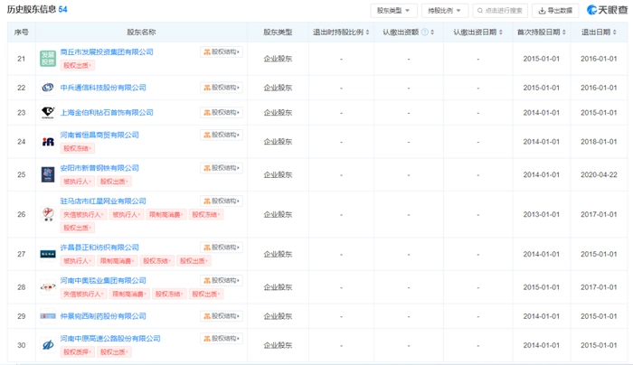 天眼查的中原银行历史股东信息里,也能看到满屏的“失信被执行人”“被执行人”“限制高消费”……