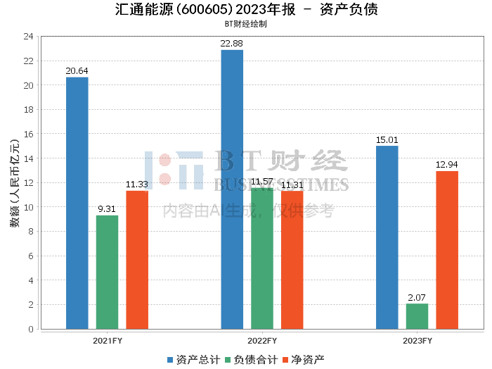 资产负债方面,汇通能源的总资产由期初的22.88亿元减少至期末的15.01亿元,负债总额也由期初的11.57亿元大幅降低至期末的2.07亿元。公司净资产从期初的11.31亿元增长至期末的12.94亿元。资产负债率显著下降,从期初的50.56%降至期末的13.79%,反映出公司的财务结构得到了显著改善。