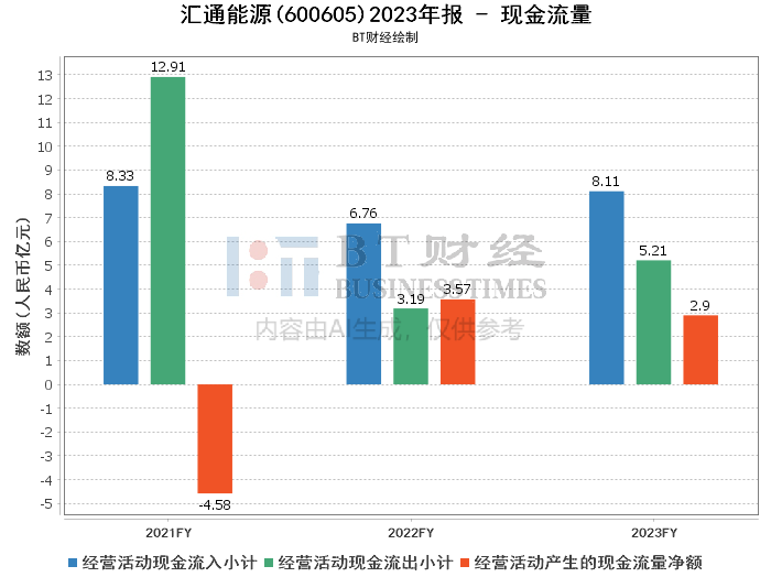 现金流量方面,汇通能源的经营活动产生的现金流量净额为2.9亿元,较上年同期的3.57亿元有所下降。经营活动产生的现金流入小计为8.11亿元,较上年同期的6.76亿元有所增加。而经营活动产生的现金流出小计为5.21亿元,较上年同期的3.19亿元也有所增加。