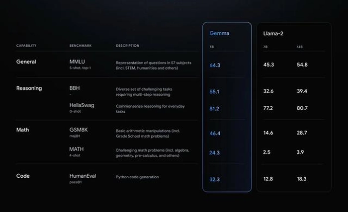 而谷歌的野心并不止于此。他们还强调,Gemma能在关键基准上越级碾压更大的模型。这意味着,即使面对那些规模更大、更复杂的竞争对手,Gemma也能展现出强大的实力。